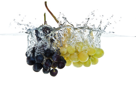 grapes in water with a splash, on a white background