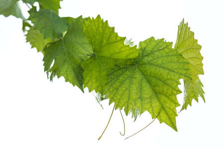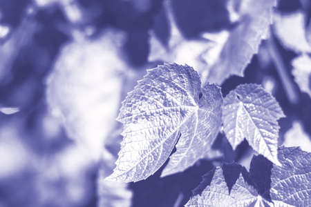 gentle young green grape leaves in the spring, closeup, blue tone, natural background