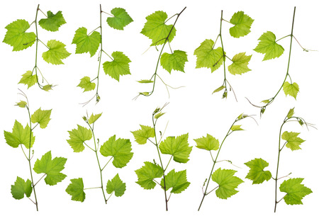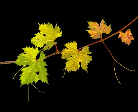 Grape branch in autumn with yellow and green leaves - isolated on white