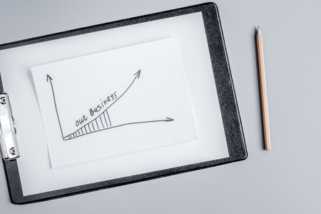 Drawing sustainable business strategy concept and future ahead idea. Economics growth graph written on white paper with pencil