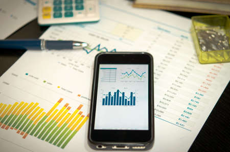 Business chart with smart phone and pen