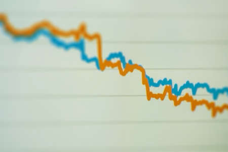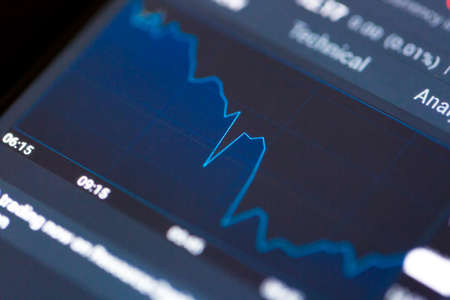 Financial diagram in crisis time. Macro shot taken from monitor screen, shallow DOF.