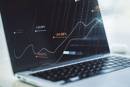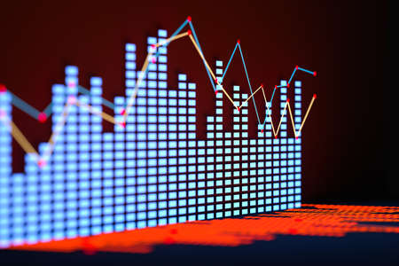 market analyze. Bar graphs, Diagrams, financial figures. Abstract glowing forex chart interface wallpaper. Investment, trade, stock, finance