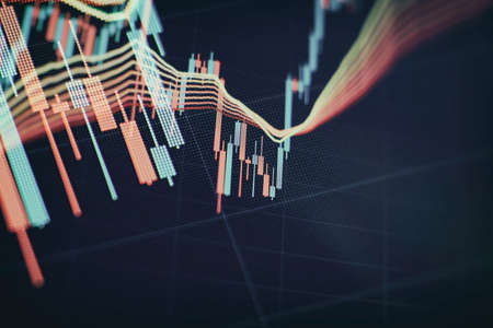 Stock exchange market chart background. Candle stick graph chart with indicator.