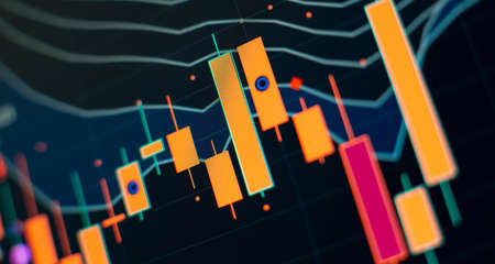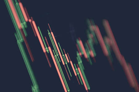 Stock market candlestick chart, asset prices movement, currency exchange price action simple concept. Computer screen, display, candle chart, graph detail, extreme closeup, nobody, no people