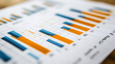 Colored sticker stripes on business analytics chart closeup