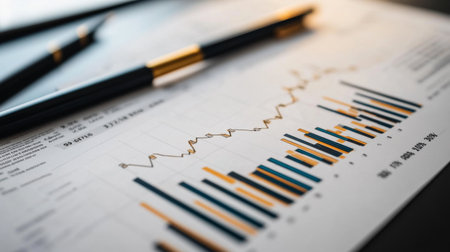 Close-up of a business chart showing a rising trend line, symbolizing growth and progress in financial performance. Ideal for economic insights.