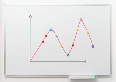 Image of white magnetic board with bussines chart report.