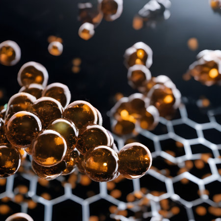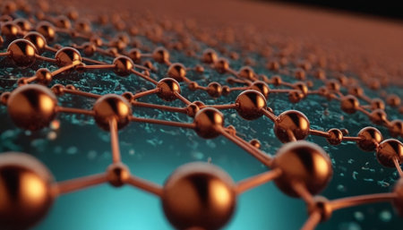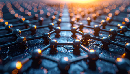Macro Photo Glowing Molecular Structure, Connected Nodes, Vibrant Energy Pathways, Selective Focus