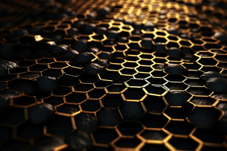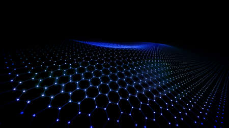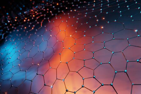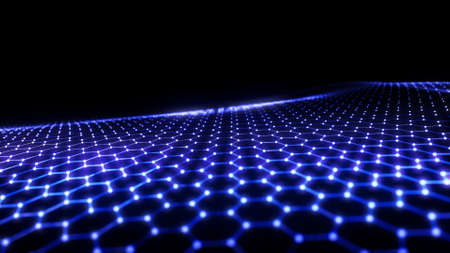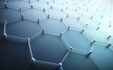 3D rendering of structure of the graphene or carbon surface, abstract nanotechnology hexagonal geometric form, atomic structure, graphene molecular structure