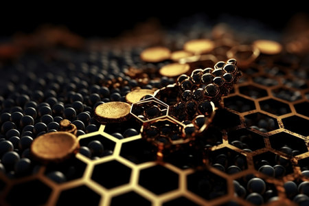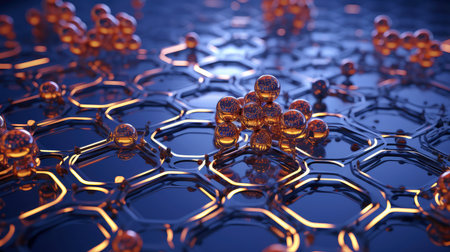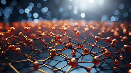 Hexagonal structures in chemistry ai generated biotechnology close-up image. Molecular structure biotech close up picture. Chemical compounds closeup photo background. Molecular framework concept