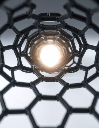 A journey into the heart of nanotechnology. This view from within a carbon nanotube reveals its perfect hexagonal lattice, a structure of immense strength and potential.