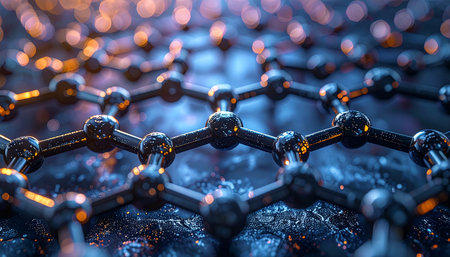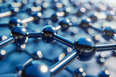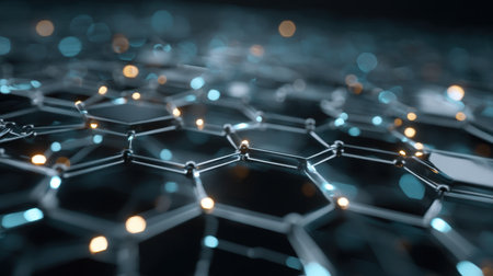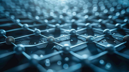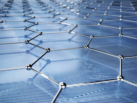 Graphene structure rendered showing interconnectivity, for science and tech illustration