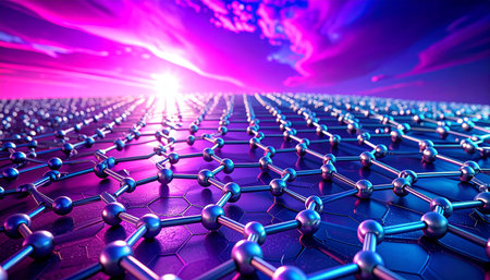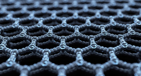 Macro shot of a single layer of graphene, showcasing its exceptional electrical conductivity and transparency.