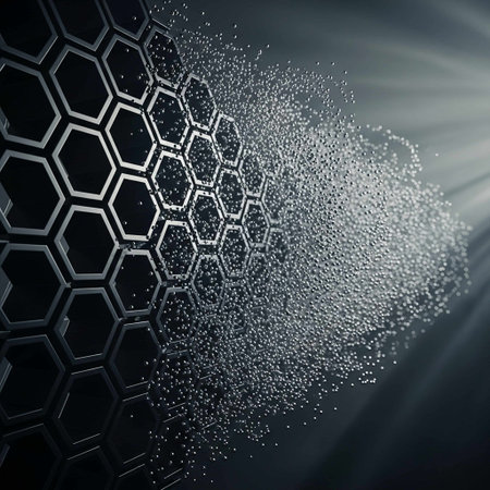 Zoomed-in photograph of graphene particles, focusing on the atomic arrangement for an innovative background.