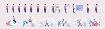 Set of businessman. Worker character collection. Colorful flat vector illustration