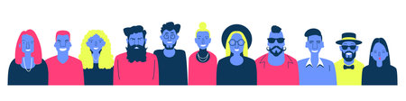 Group of people of different nationalities and cultures. people background. The crowd of abstract people. Shoulders avatars. Bright people portrait set. Vector illustration in flat design.