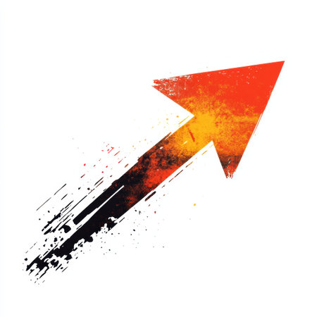 Bright orange arrow symbolizing progress, surrounded by debris and glowing lines on dark surface, creating dynamic and futuristic atmosphere