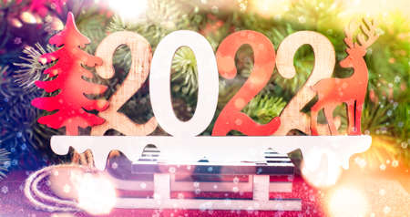 installation of a small house with Christmas tree and date 2020. winter holiday landscape
