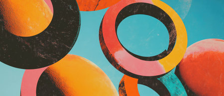 Vibrant layered circular patterns create a dynamic and colorful background display