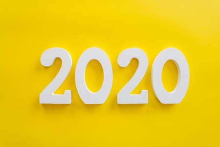 2020 number written in white on yellow background, new year concept
