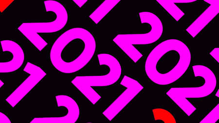 Computer generated New year inscription 2021 on dark backdrop. Animation. Many 2021 digits flowing diagonally, seamless loop.