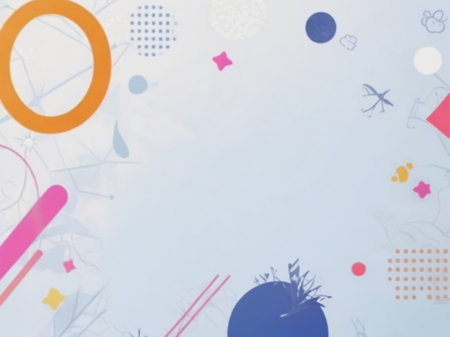 Geometric shapes in pastel tones create a vibrant abstract background
