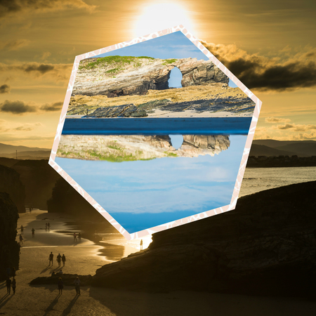 Minimalist collage reflecting inner peace with geometric shapes and calm ocean sunrise