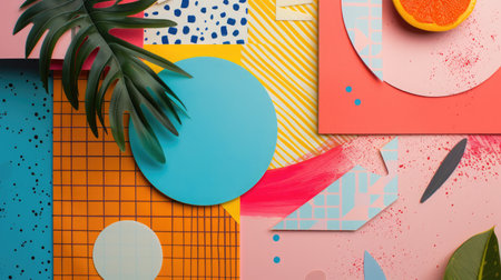 A vibrant and playful composition featuring abstract geometric shapes in bold colors, perfect for design projects needing a fresh and modern touch.
