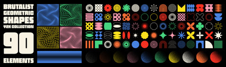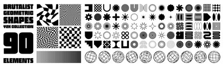 Retro geometric shapes set. Brutalist style abstract elements. Vector illustration