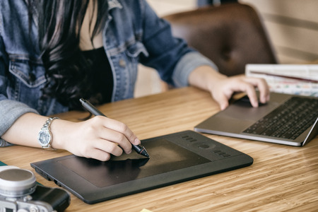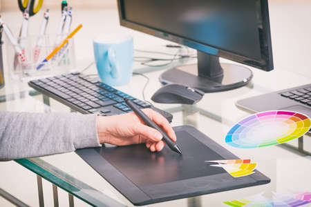 creative graphic designer with graphic tablet. High quality beautiful photo concept