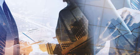 double exposure,hipster hand using smart phone,digital tablet docking keyboard,coffee cup, payments online business,sitting on sofa in living room,work at home concept,London architecture city