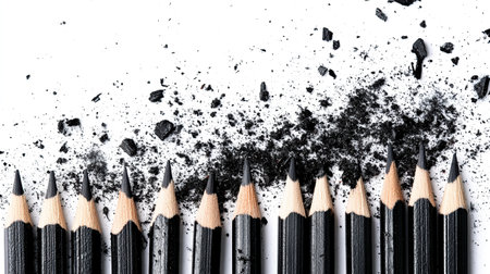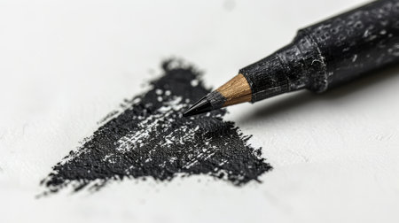 A black pencil disperses graphite dust across a white background, showcasing the beauty of artistic creation while emphasizing themes of inspiration and minimalism.