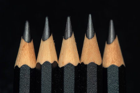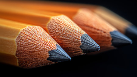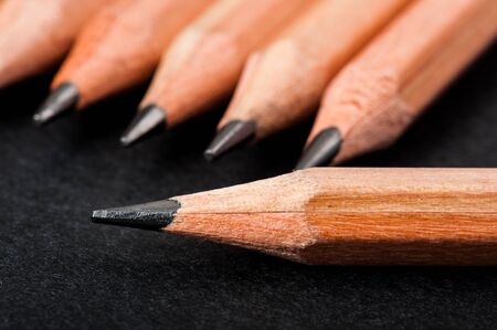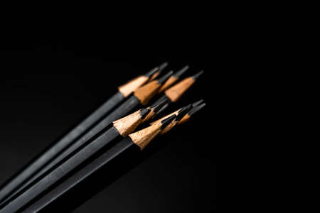 Close-up of sharpened pencils on black background, attention to detail concept