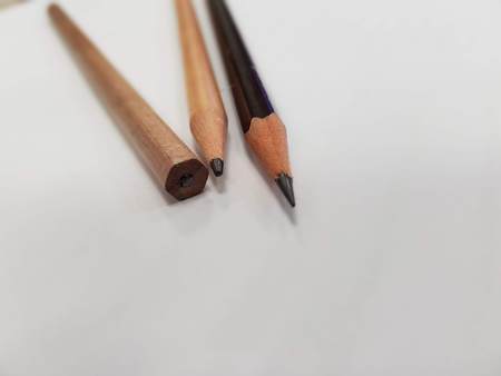 Closeup pencil with a broken tip on white background
