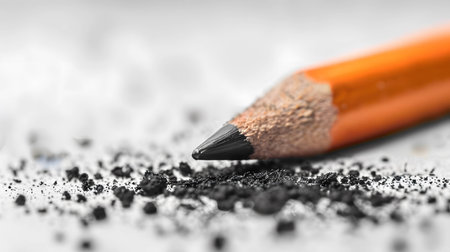 A captivating close-up shot of a sharpened pencil tip, revealing fine shavings and dust particles. This image captures intricate details and textures, perfect for creative projects.