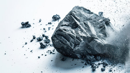 An asteroid floating in space, rendered with photorealistic detail and texture. The background is black to highlight the gray stone color of the meteorite. A high-quality image showcasing the intricate details and textures of an asteroid's surface. --chaos 30 --ar 16:9 --v 6.1 Job ID: a15b3fff-1be1-4976-9e0a-f3492549db1c