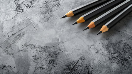 AI Generated. Black pencil placed vertically on a textured gray concrete background with ample copy space for text insertion