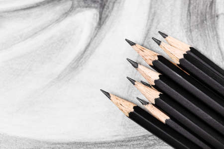 top view of set of black graphite pencils on hand-drawn academic drawing close up