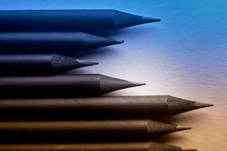 Close up of black pencil on blue background