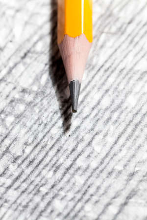 Close up of black graphite pencil on the top of white paper with abstract sketching