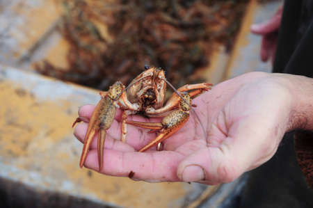 Danube or narrow-clawed crayfish in hand, its scientific name is Astacus leptodactylus