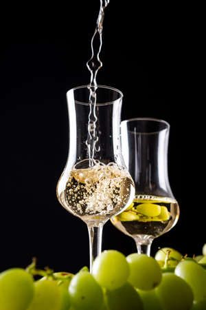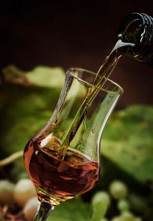 Glass of brandy based on grapes, called bagaceira in Portugal and in Italy Grappa or Graspa