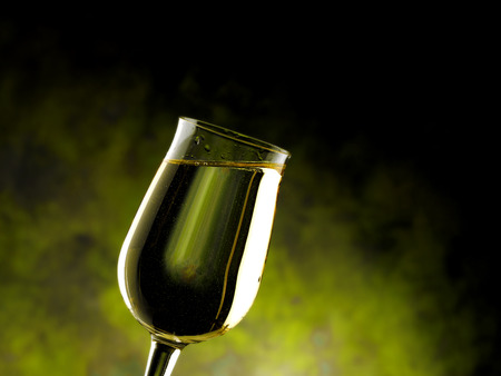 Glass of alcoholic drink on a dark background