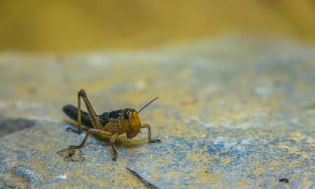 macro closeup portrait of a locust, popular insect from Eurasia, Grasshopper species
