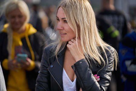 Riga, Latvia - September 22, 2020: Bikers celebrated the opening of motorcycling season by ride over city.