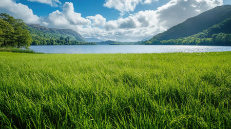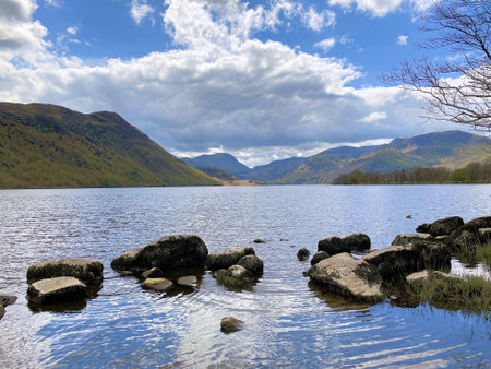 Landscape Reflections of clouds and blue sky in Grasmere Lake in The lake District national Park