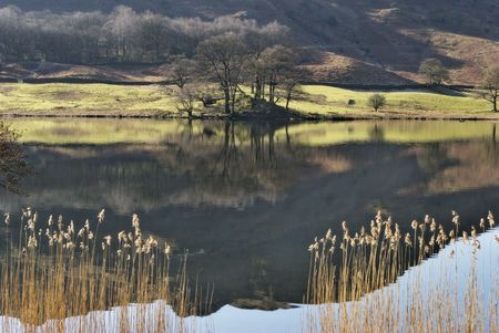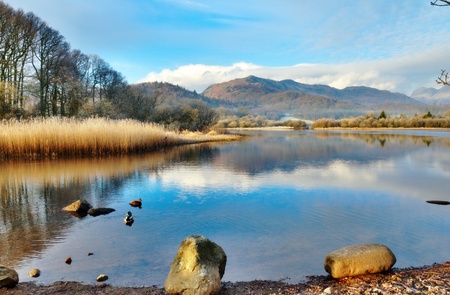 Reflections in Grasmere on a sunny autumn day in the English Lake District