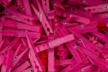 Colorful clothespins on a clothesline in the garden. Selective focus.