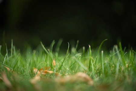 Close-up green lawn background and blurred